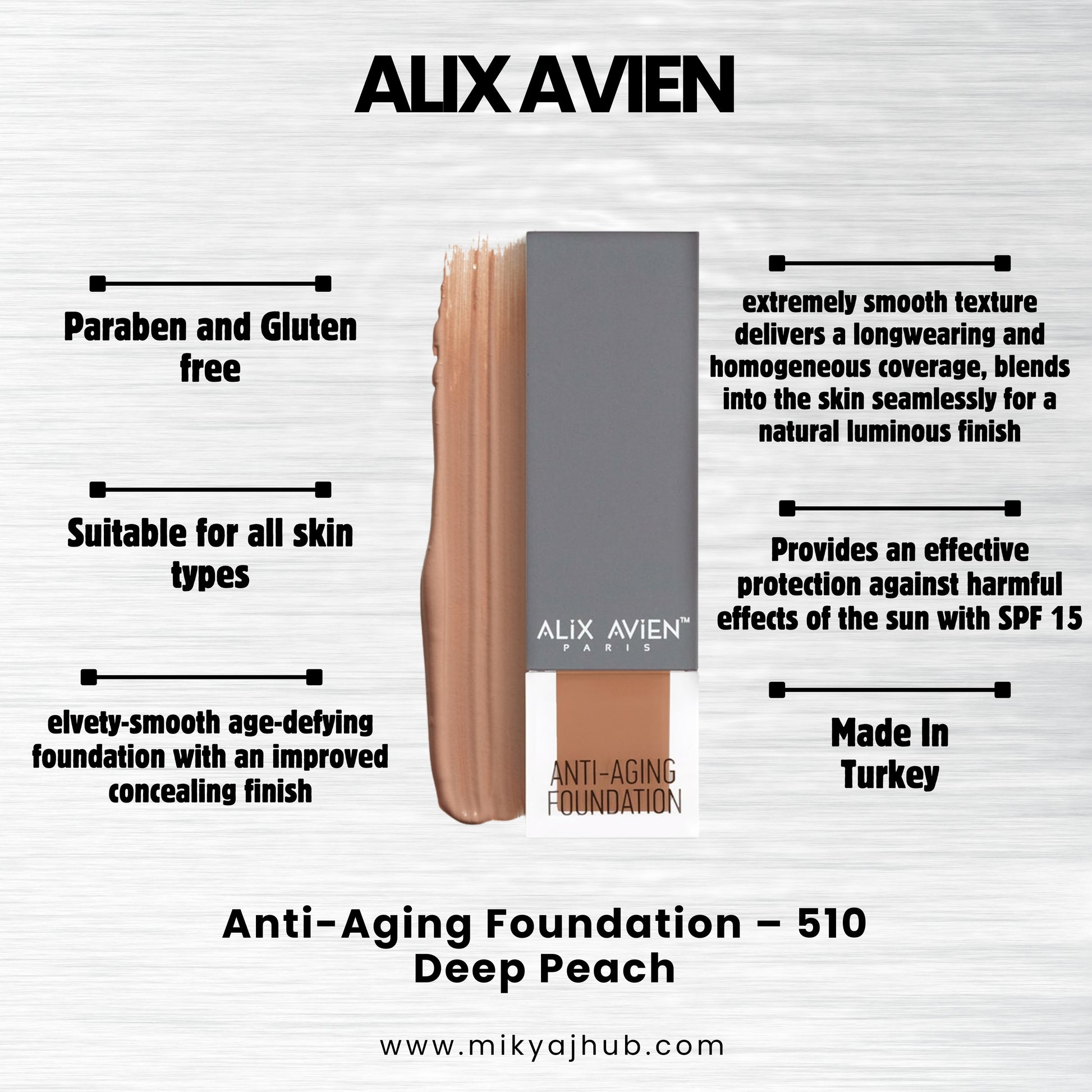 A velvety-smooth age-defying foundation with an improved concealing finish.